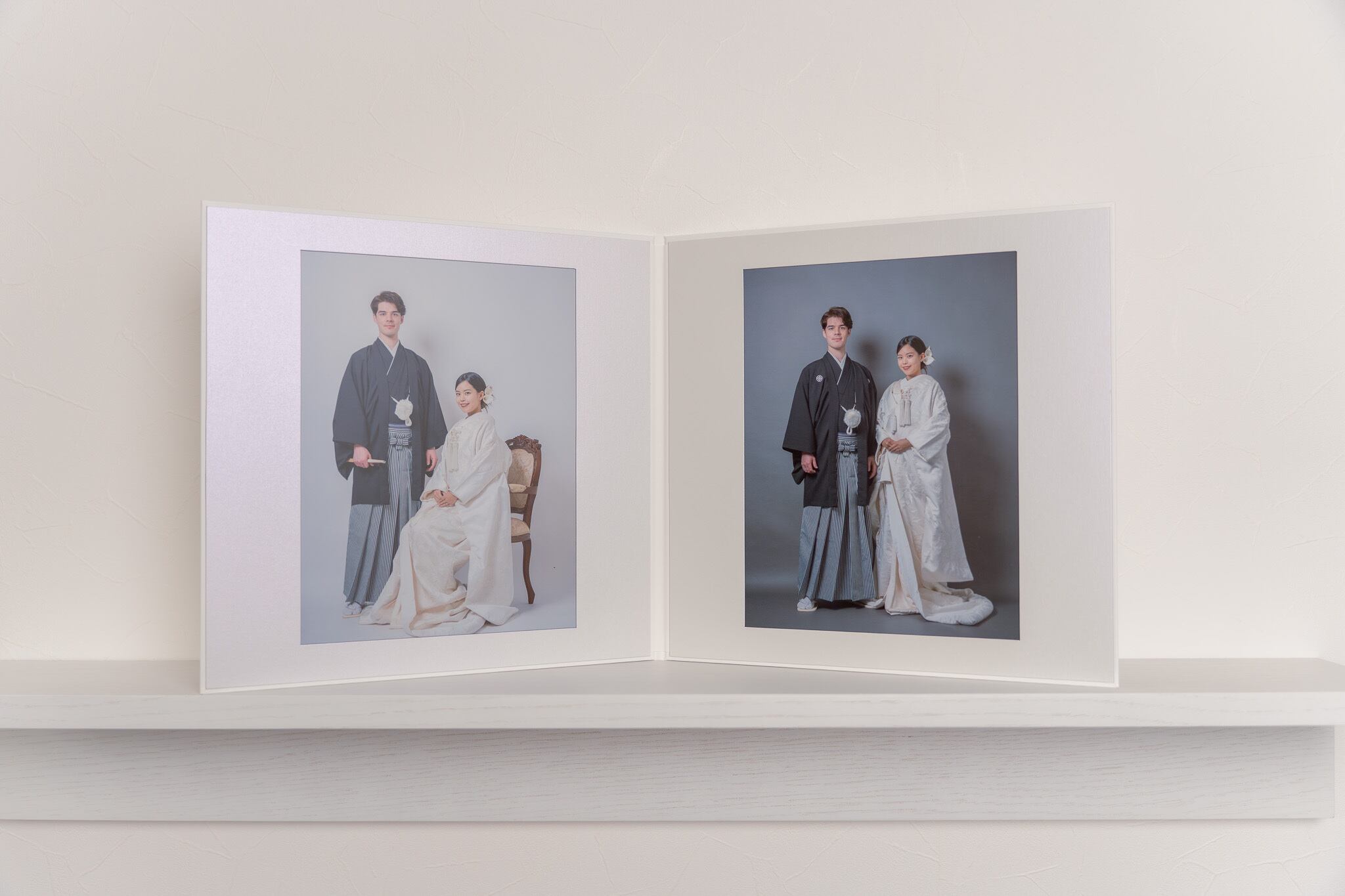 ページ内には2枚の写真をセット可能で、和装・洋装の2シーンを一冊にまとめたり、